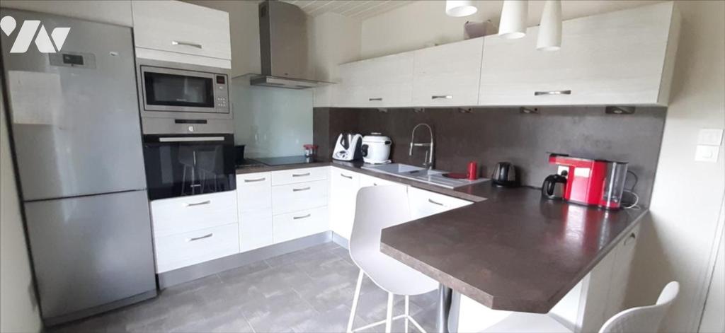 Une Maison indépendante sur sous-sol à usage d'habitation comprenant : Au rez-de-chaussée : Chambre, pièce, buanderie, garage. Au rez-de-jardin : Séjour salon, cuisine aménagée et équipée ouverte sur la terrasse, deux chambres, salle d'eau (grande douche bac plat), WC indépendant. Grenier au-dessus. Egalement inclus : Balcon, terrasse, grande cour avec places de parking, jardin arboré, aménagé et clos.